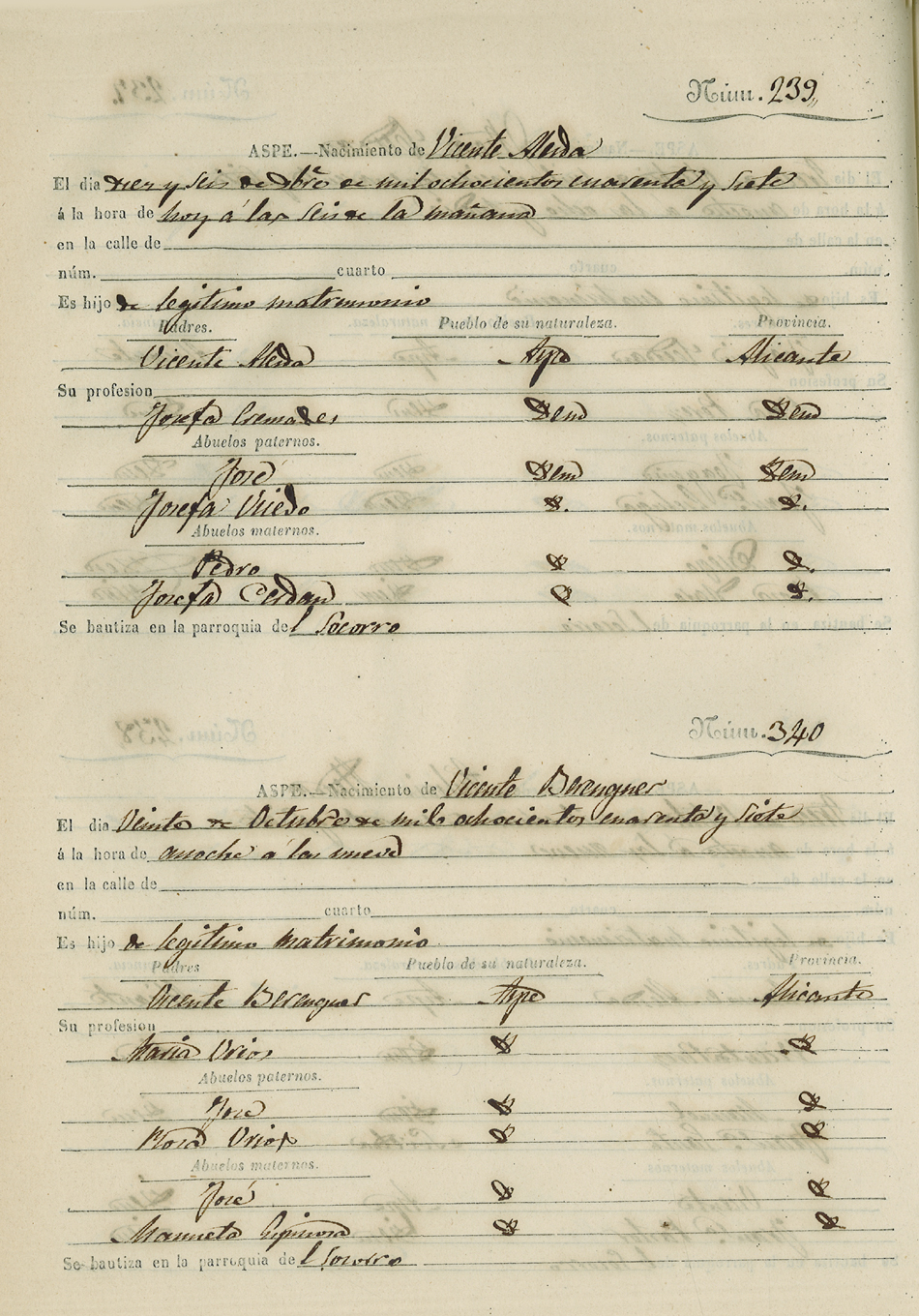Registro civil de nacidos de la Villa de Aspe