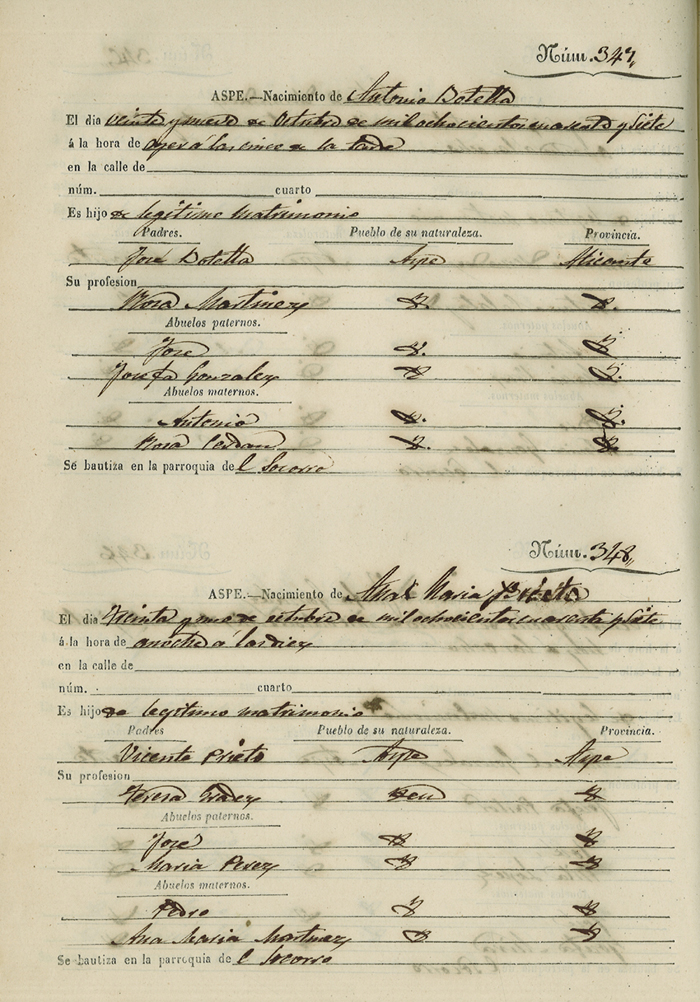 Registro civil de nacidos de la Villa de Aspe