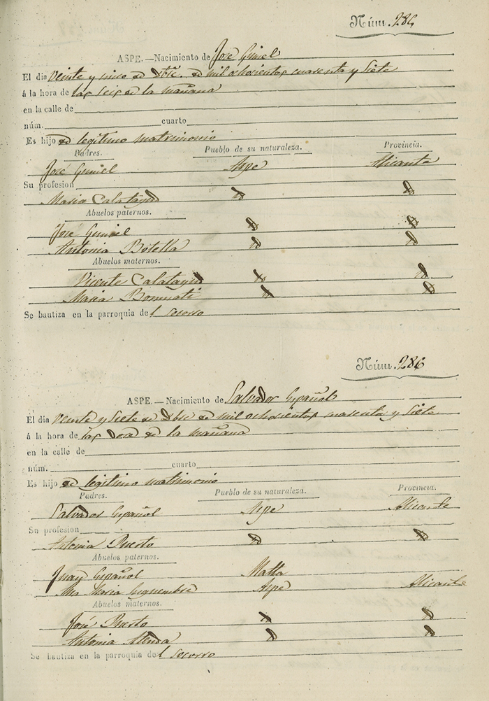 Registro civil de nacidos de la Villa de Aspe