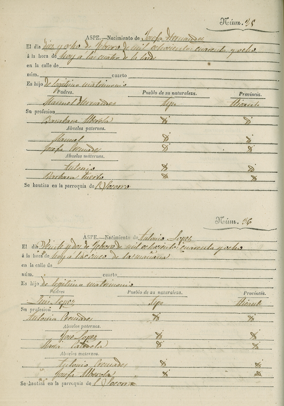 Registro civil de nacidos de la Villa de Aspe