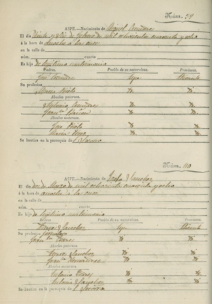 Registro civil de nacidos de la Villa de Aspe