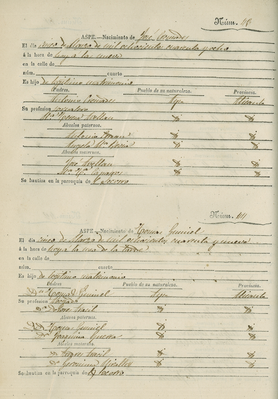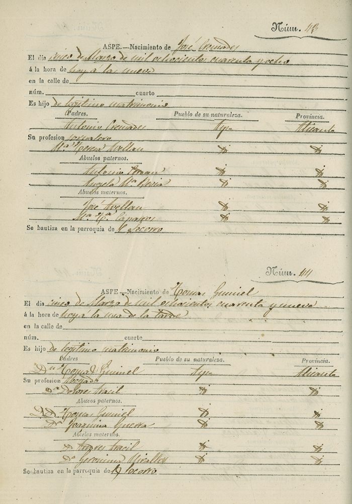 Registro civil de nacidos de la Villa de Aspe