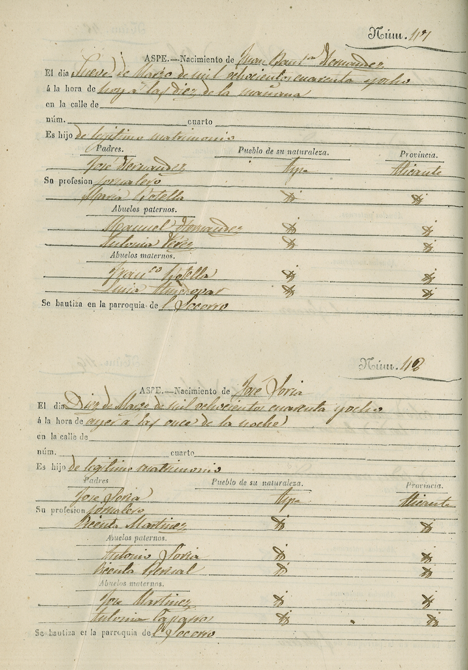 Registro civil de nacidos de la Villa de Aspe