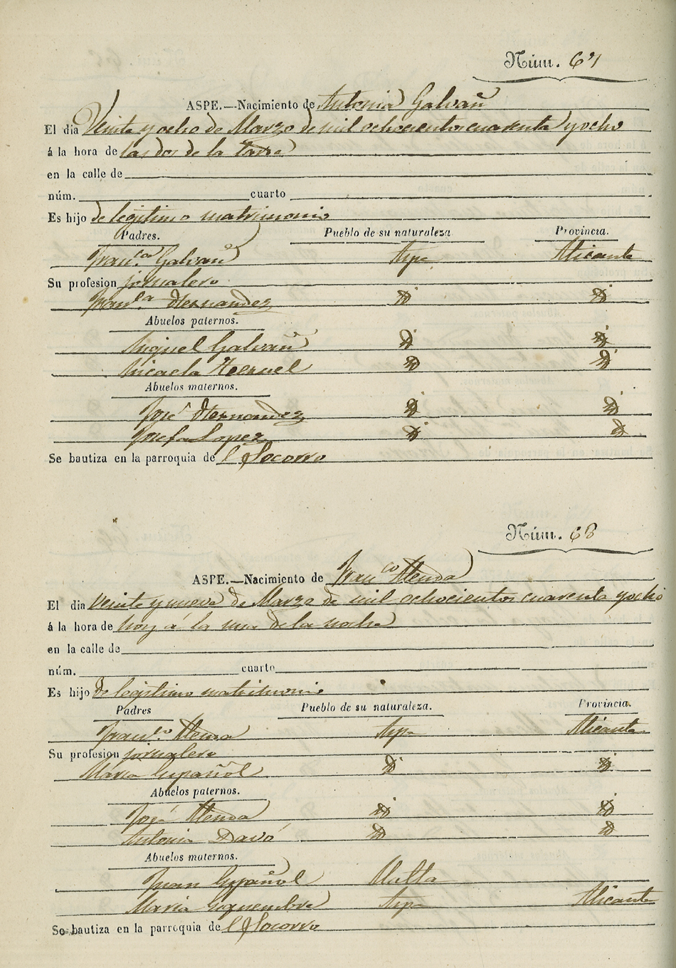 Registro civil de nacidos de la Villa de Aspe