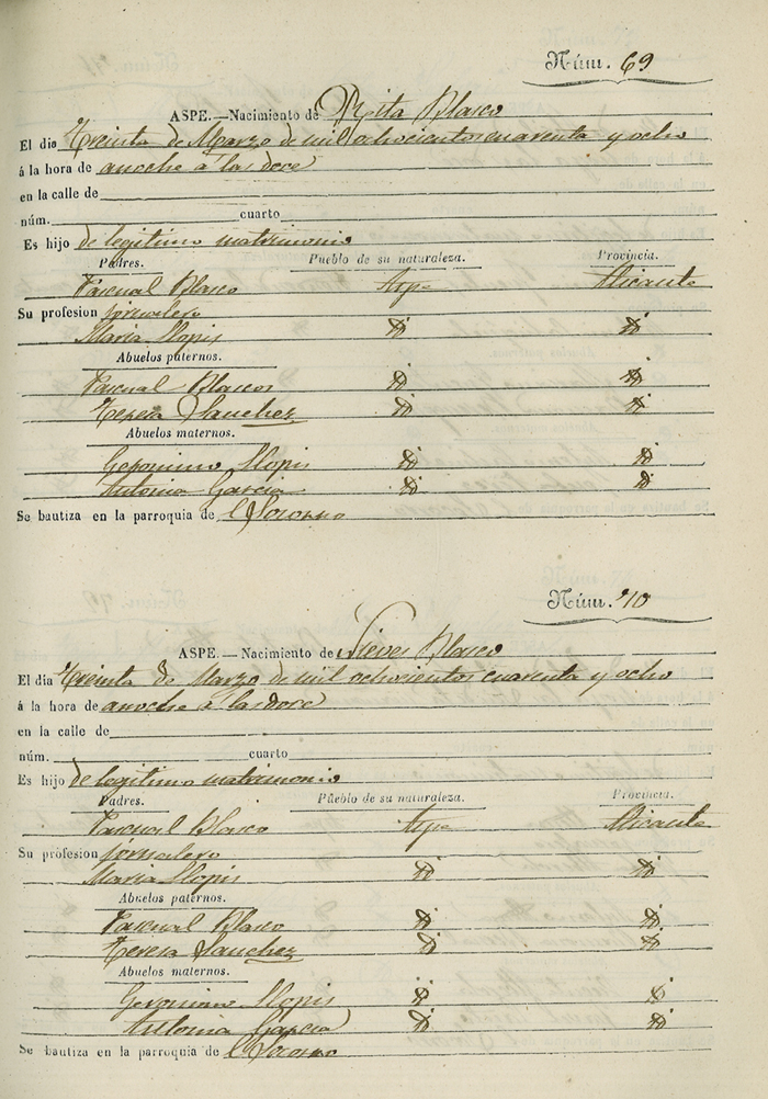 Registro civil de nacidos de la Villa de Aspe
