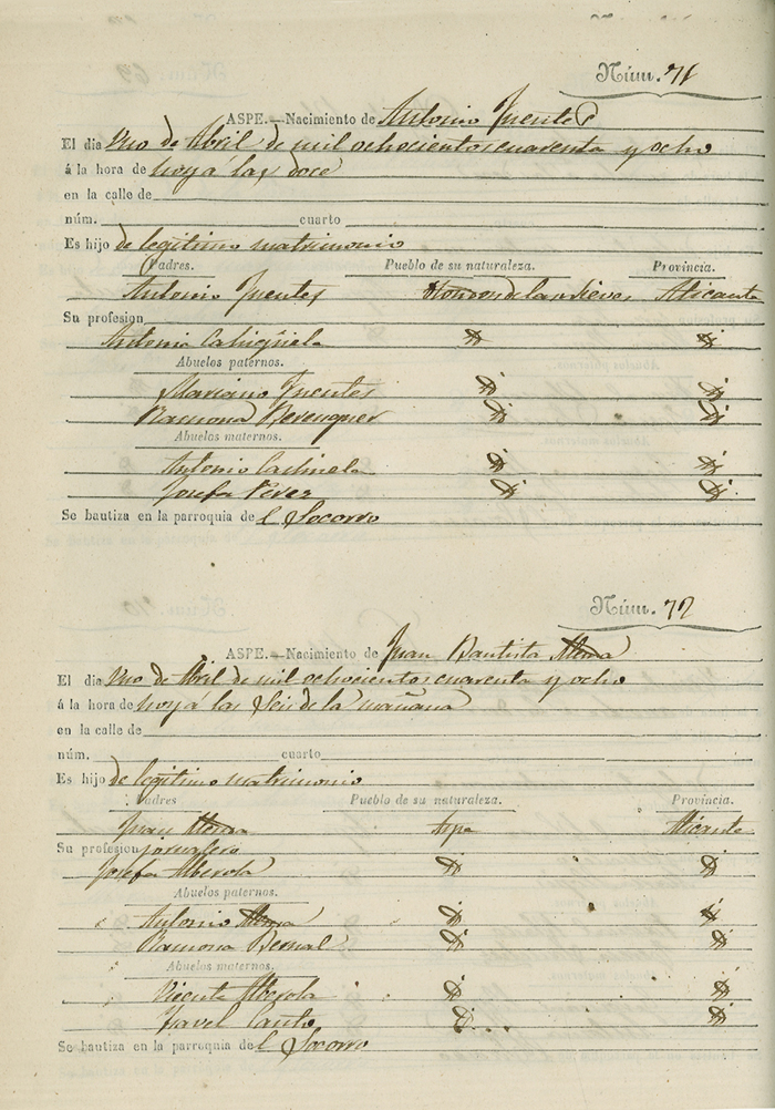 Registro civil de nacidos de la Villa de Aspe