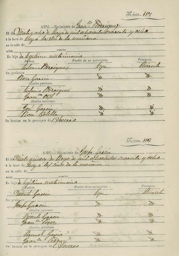 Registro civil de nacidos de la Villa de Aspe