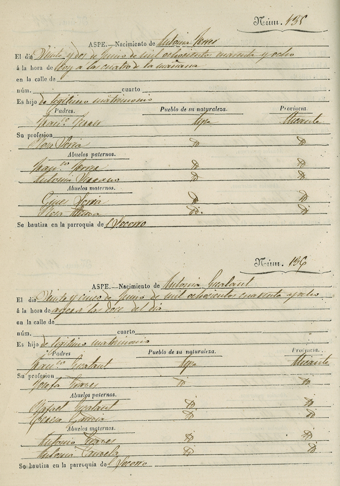 Registro civil de nacidos de la Villa de Aspe