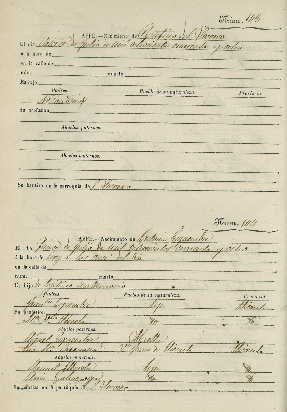 Registro civil de nacidos de la Villa de Aspe