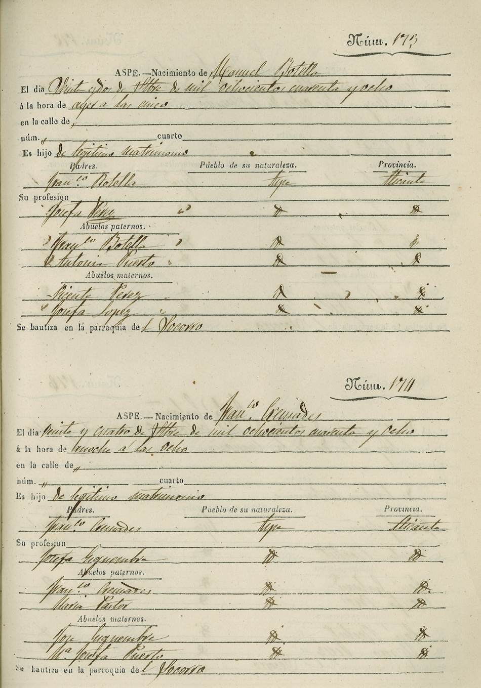 Registro civil de nacidos de la Villa de Aspe