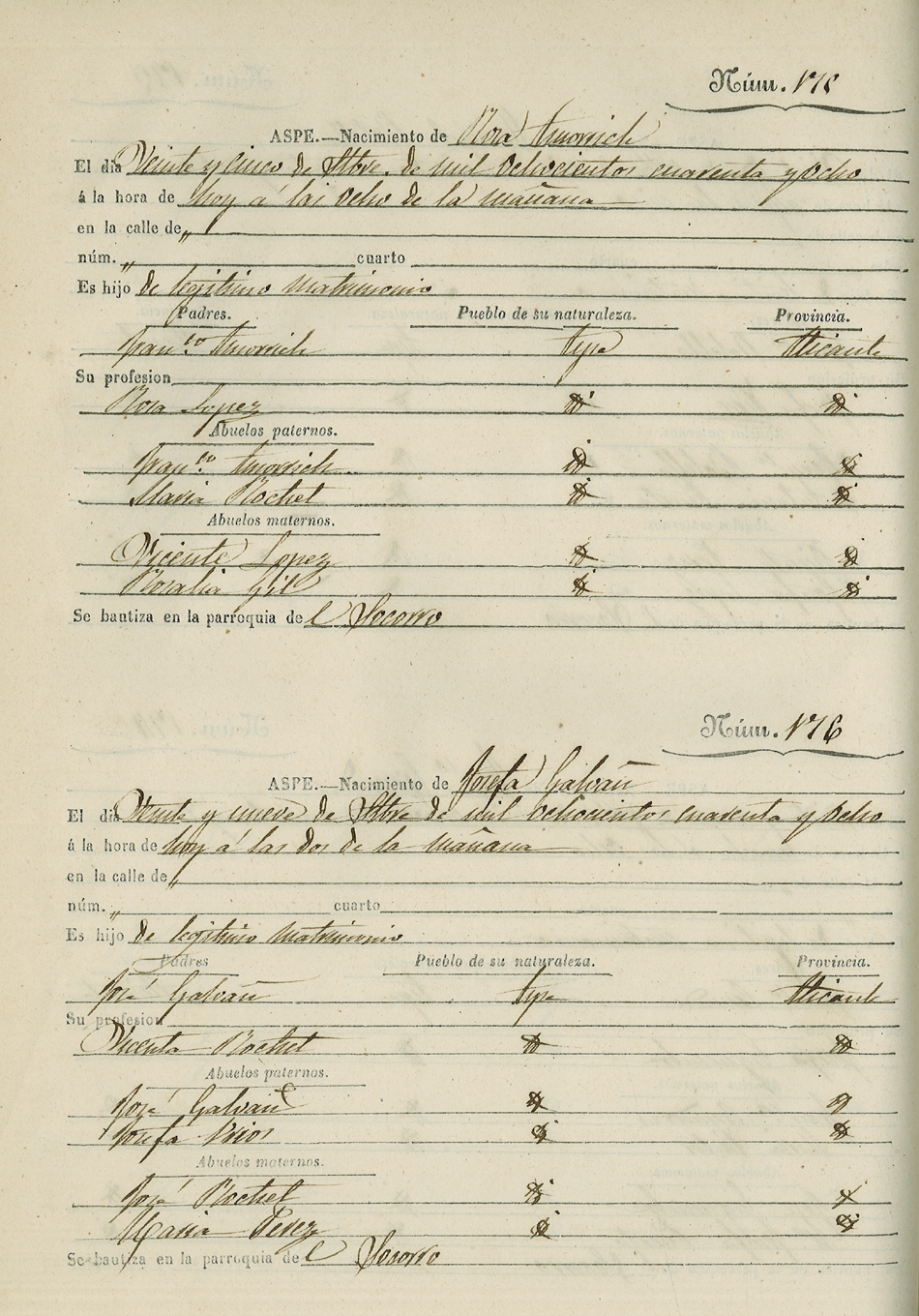 Registro civil de nacidos de la Villa de Aspe