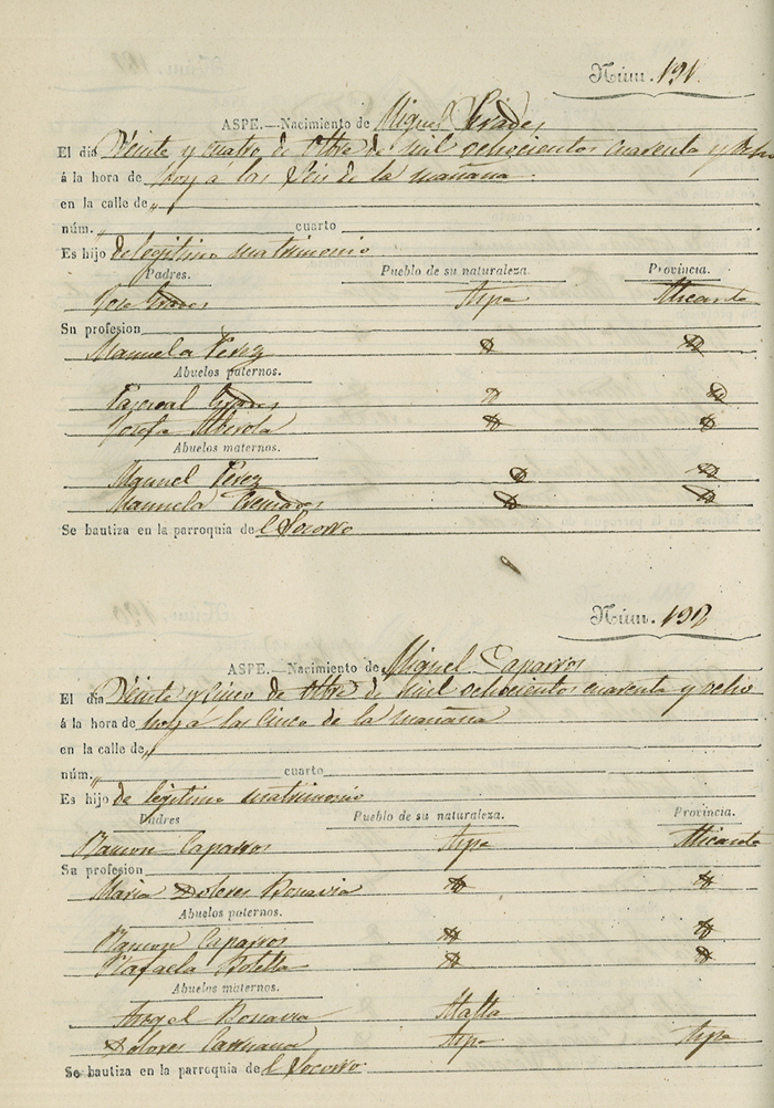 Registro civil de nacidos de la Villa de Aspe