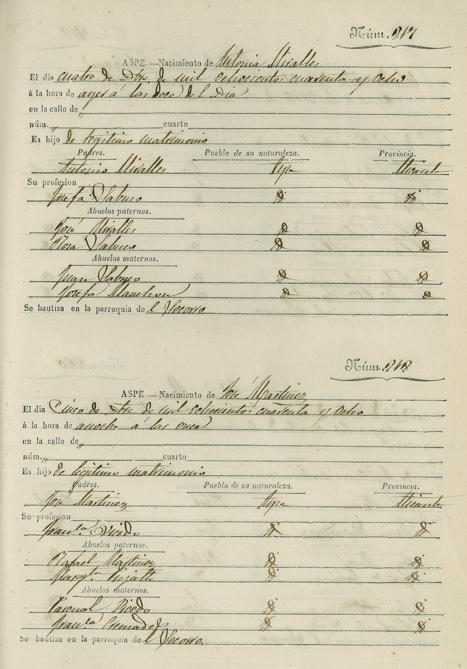 Registro civil de nacidos de la Villa de Aspe