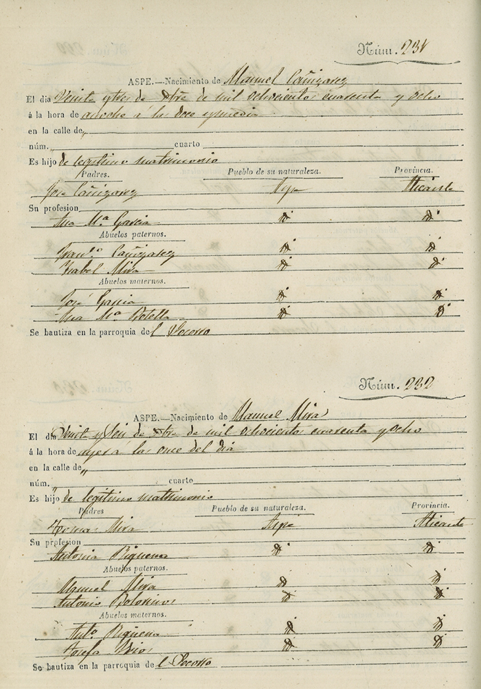Registro civil de nacidos de la Villa de Aspe