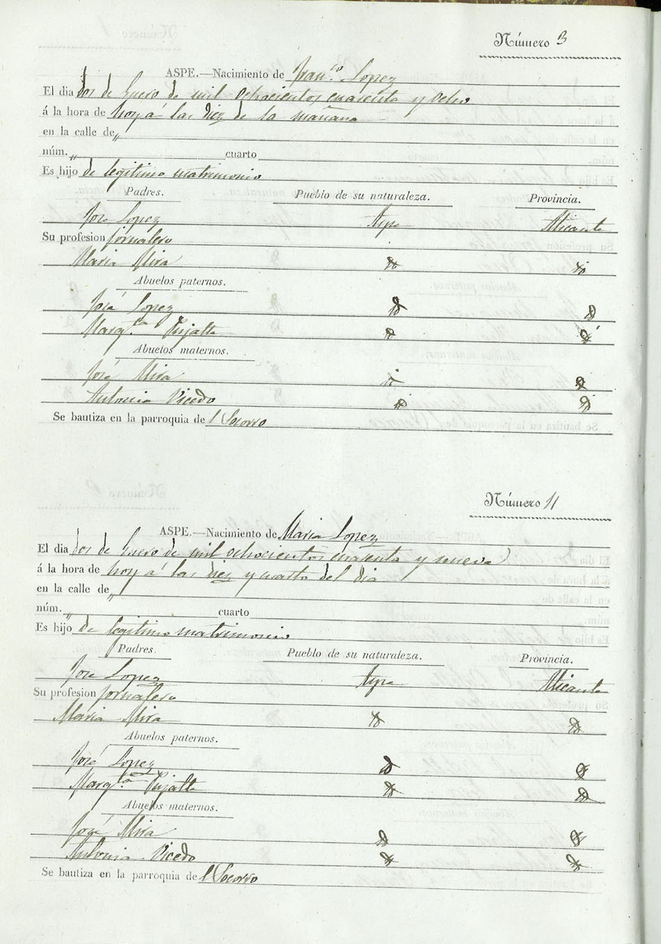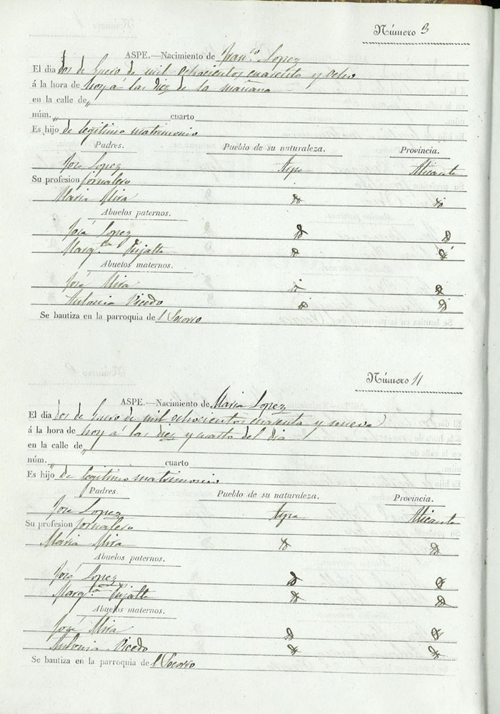 Registro civil de nacidos de la Villa de Aspe