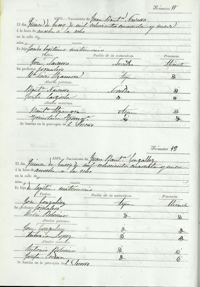 Registro civil de nacidos de la Villa de Aspe