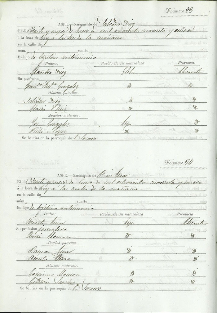 Registro civil de nacidos de la Villa de Aspe