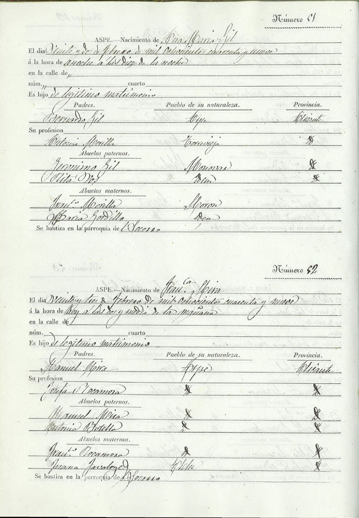 Registro civil de nacidos de la Villa de Aspe