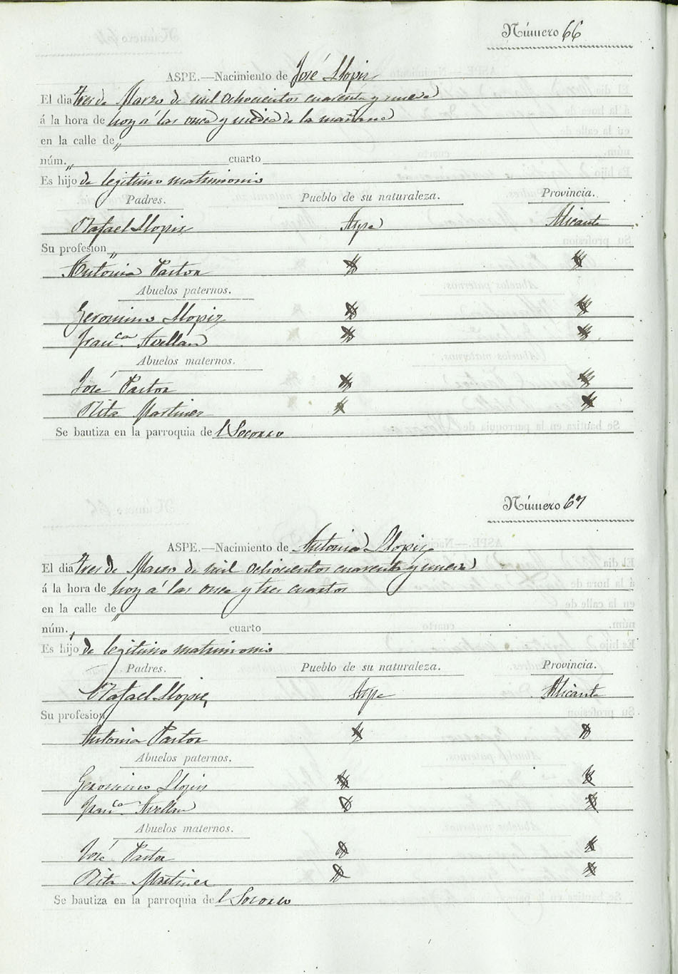 Registro civil de nacidos de la Villa de Aspe