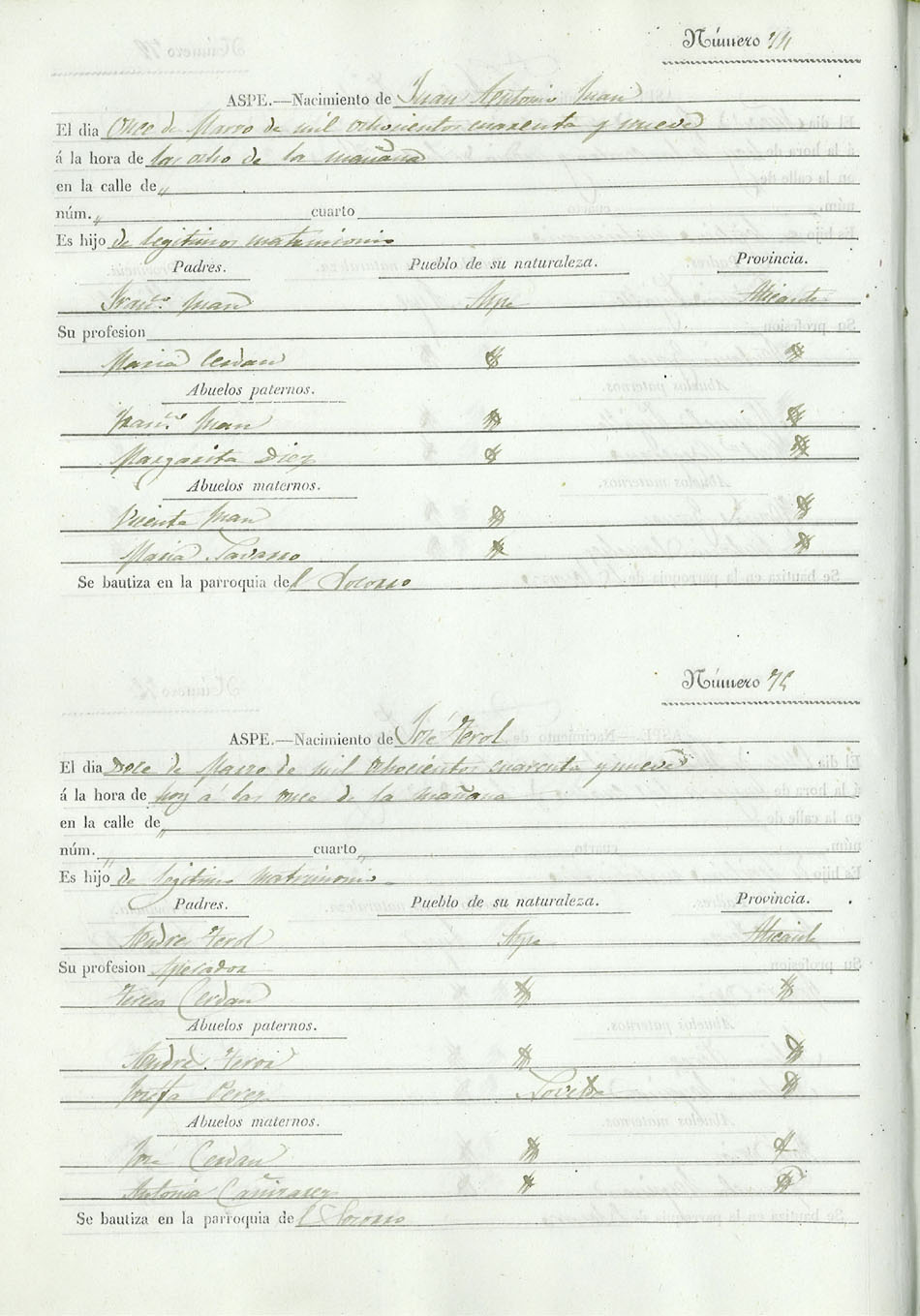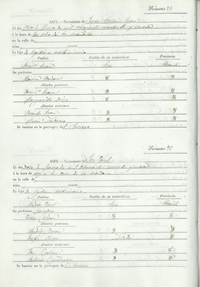 Registro civil de nacidos de la Villa de Aspe