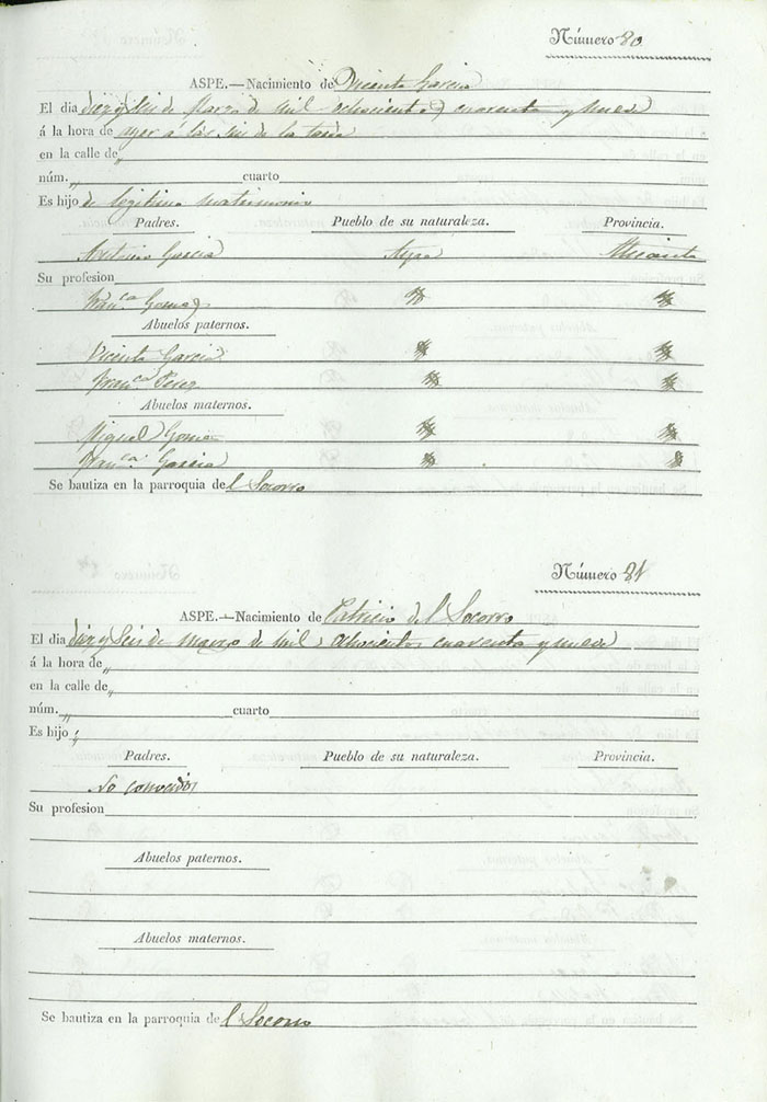 Registro civil de nacidos de la Villa de Aspe