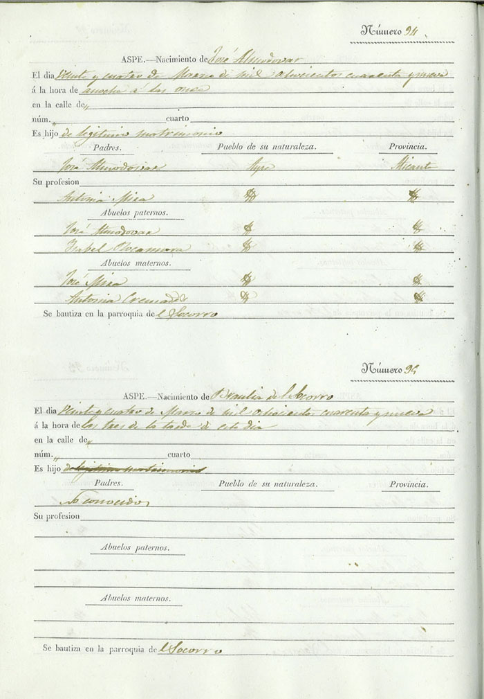 Registro civil de nacidos de la Villa de Aspe