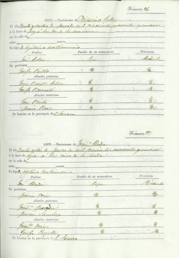 Registro civil de nacidos de la Villa de Aspe