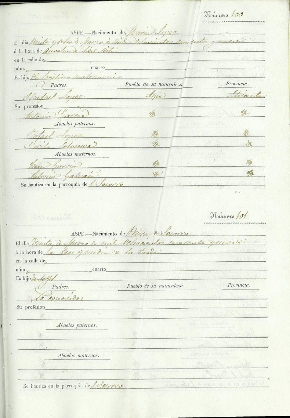 Registro civil de nacidos de la Villa de Aspe