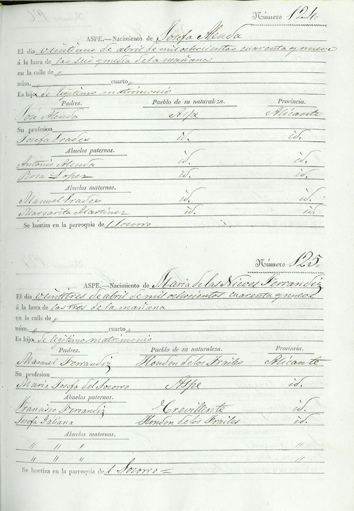 Registro civil de nacidos de la Villa de Aspe