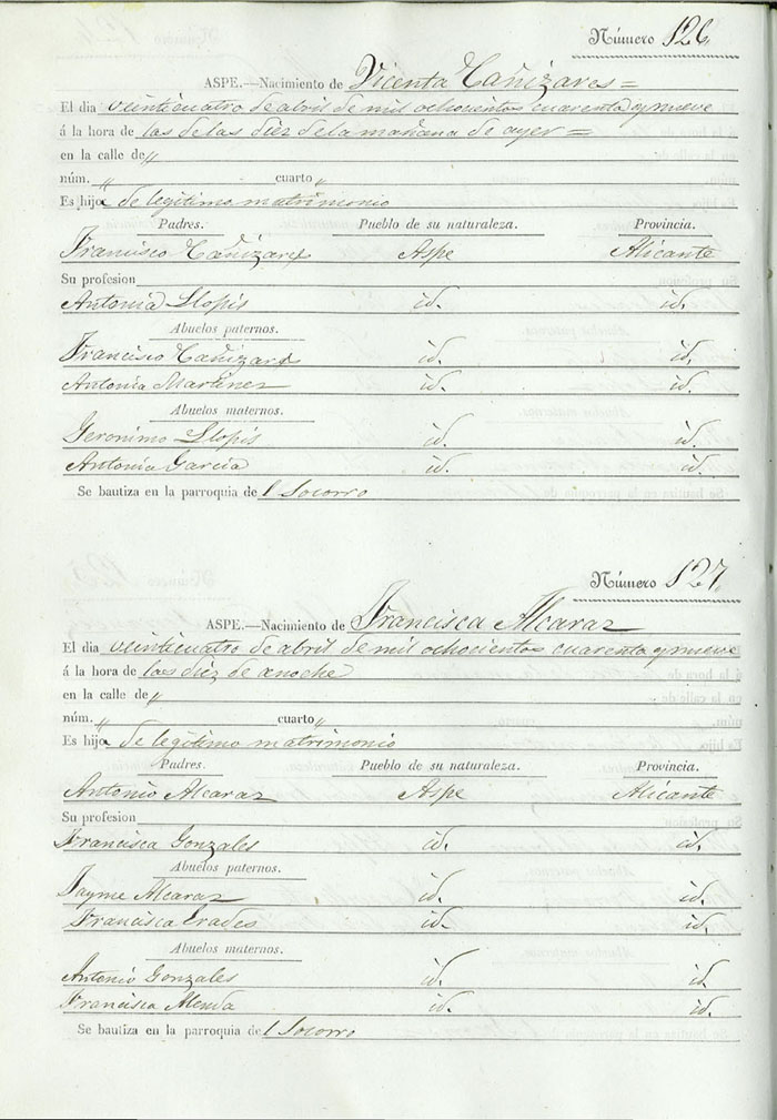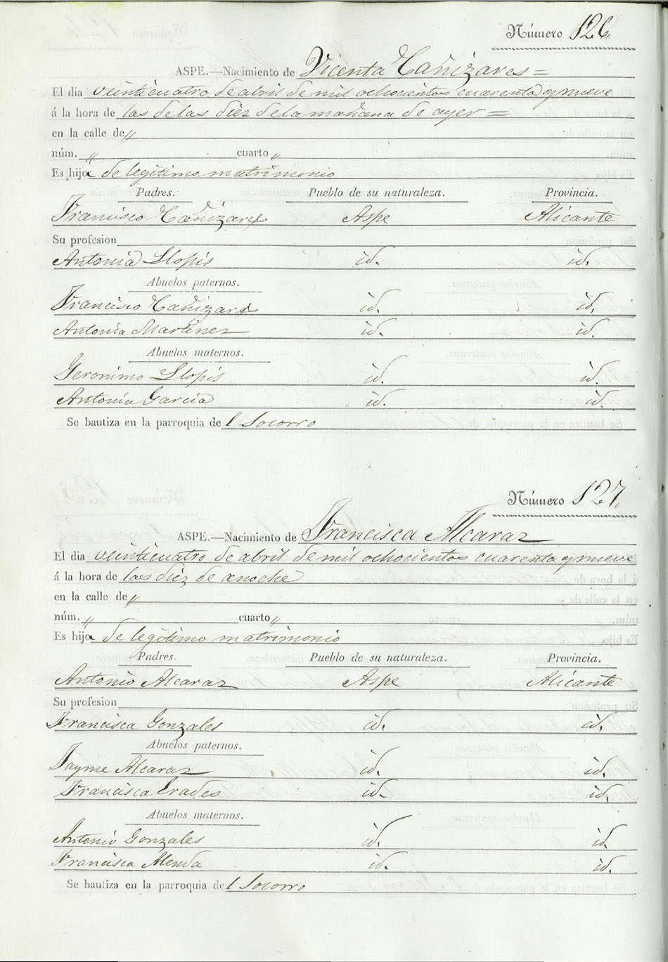 Registro civil de nacidos de la Villa de Aspe