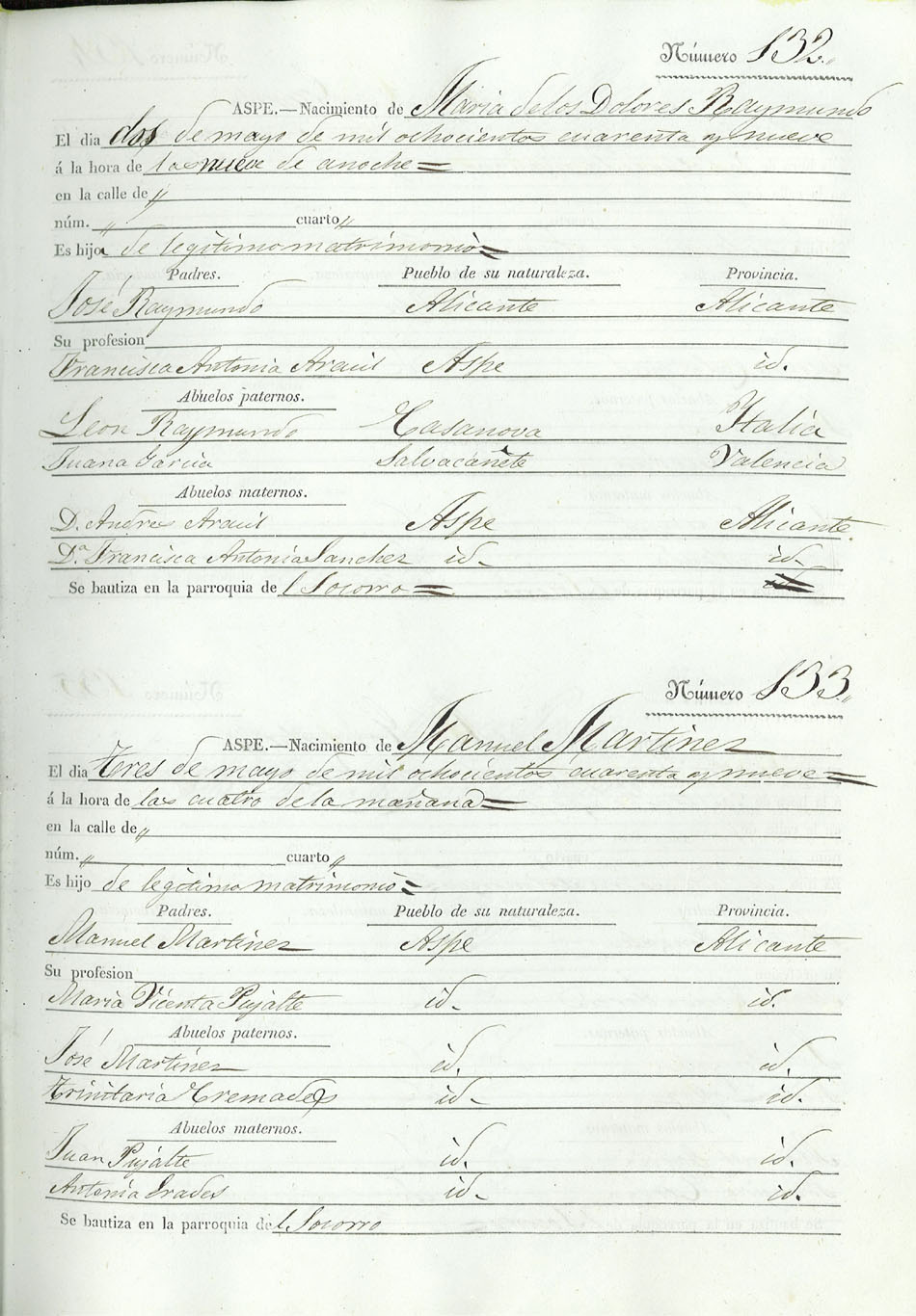 Registro civil de nacidos de la Villa de Aspe