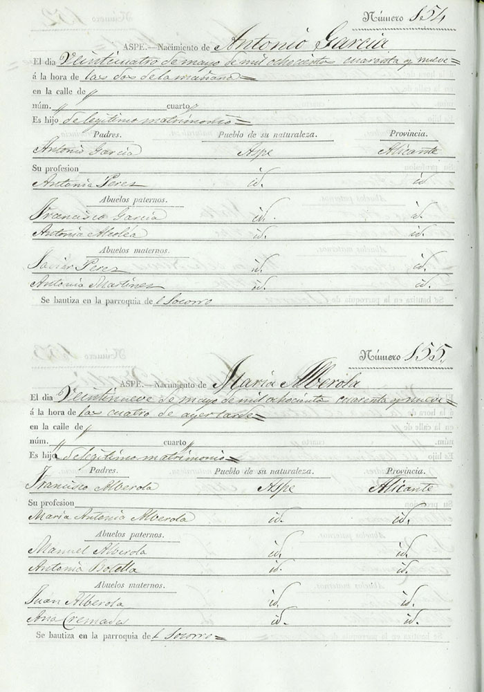 Registro civil de nacidos de la Villa de Aspe