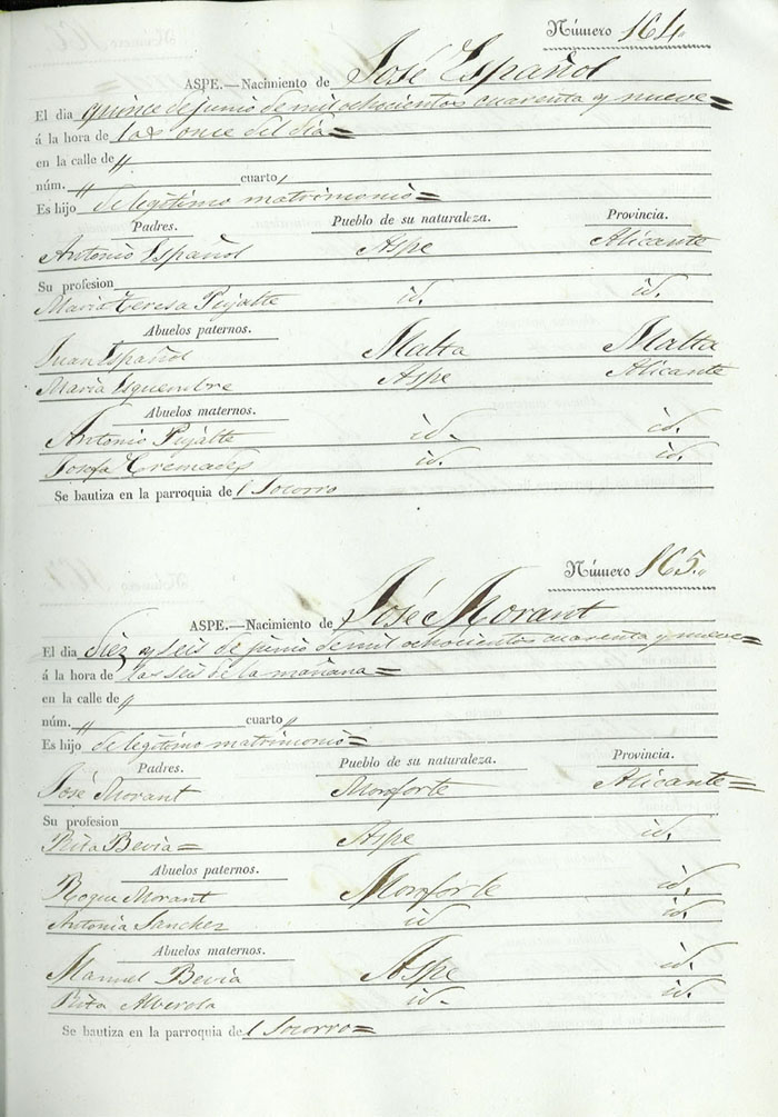 Registro civil de nacidos de la Villa de Aspe