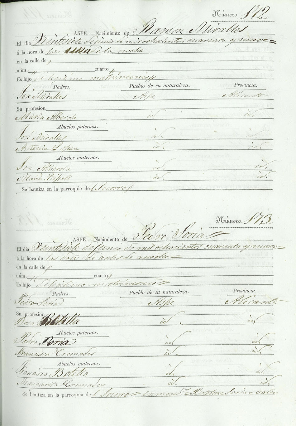 Registro civil de nacidos de la Villa de Aspe