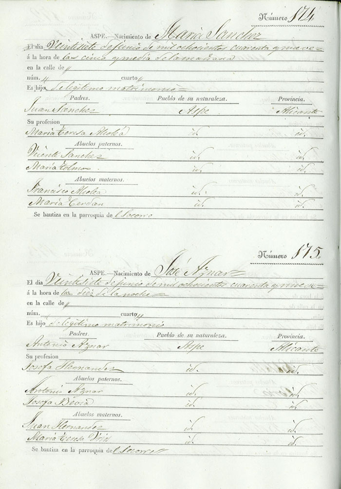 Registro civil de nacidos de la Villa de Aspe