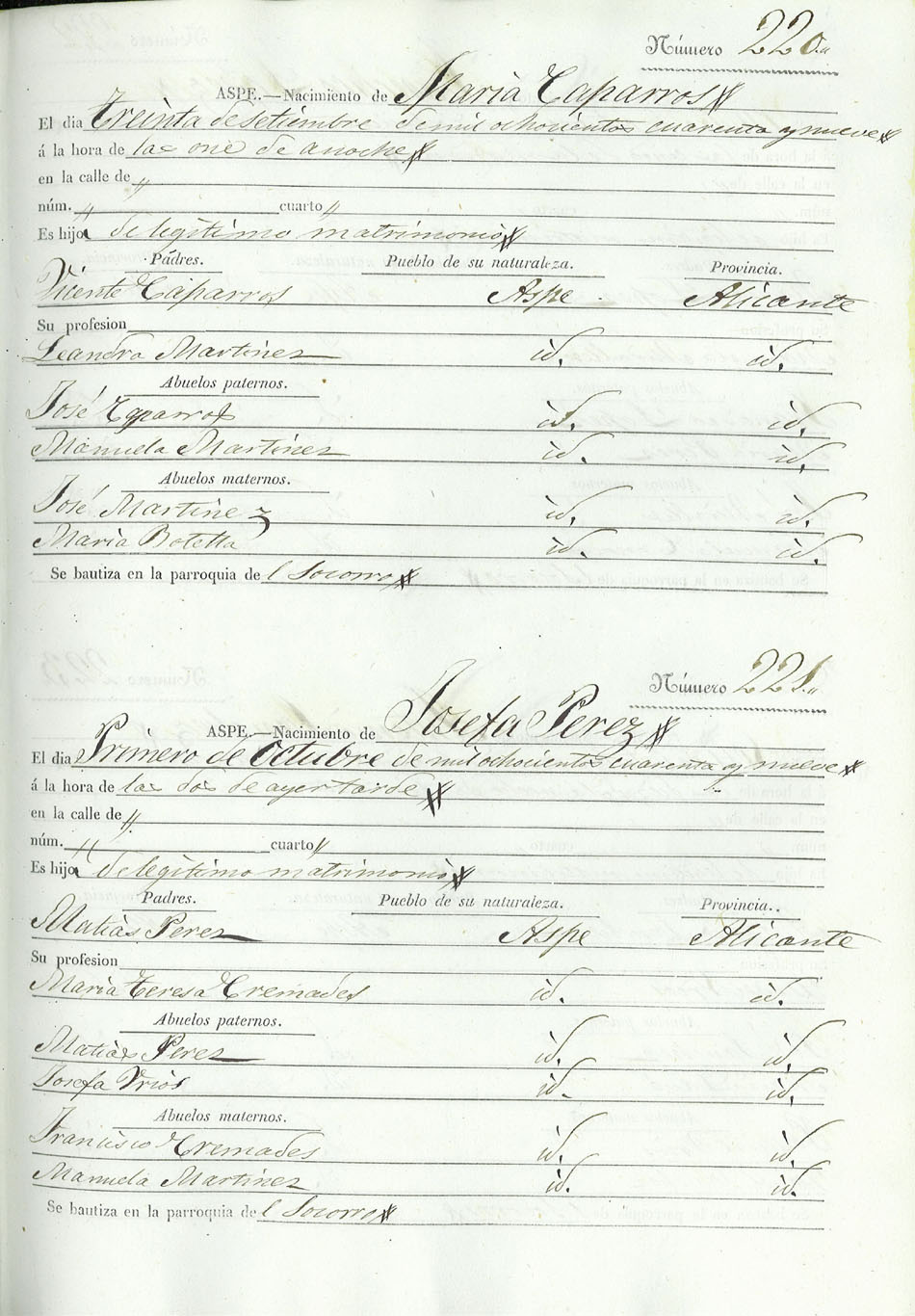 Registro civil de nacidos de la Villa de Aspe