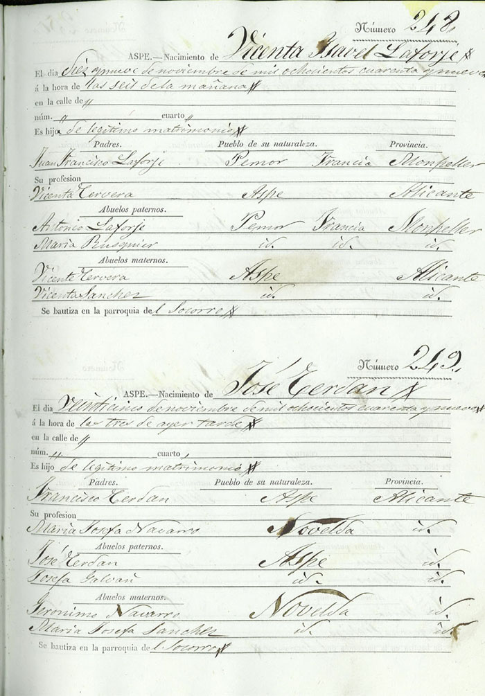 Registro civil de nacidos de la Villa de Aspe