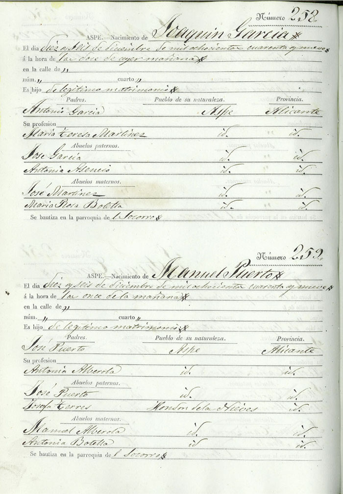 Registro civil de nacidos de la Villa de Aspe