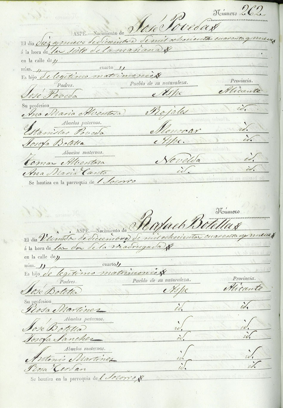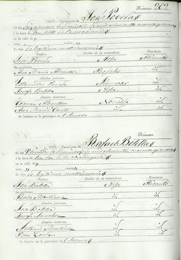 Registro civil de nacidos de la Villa de Aspe
