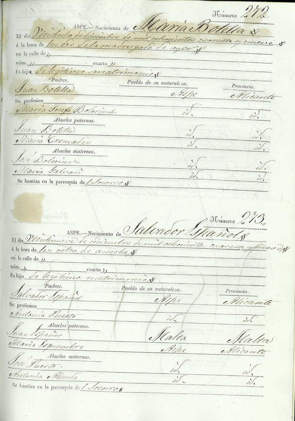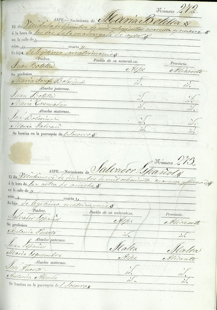 Registro civil de nacidos de la Villa de Aspe