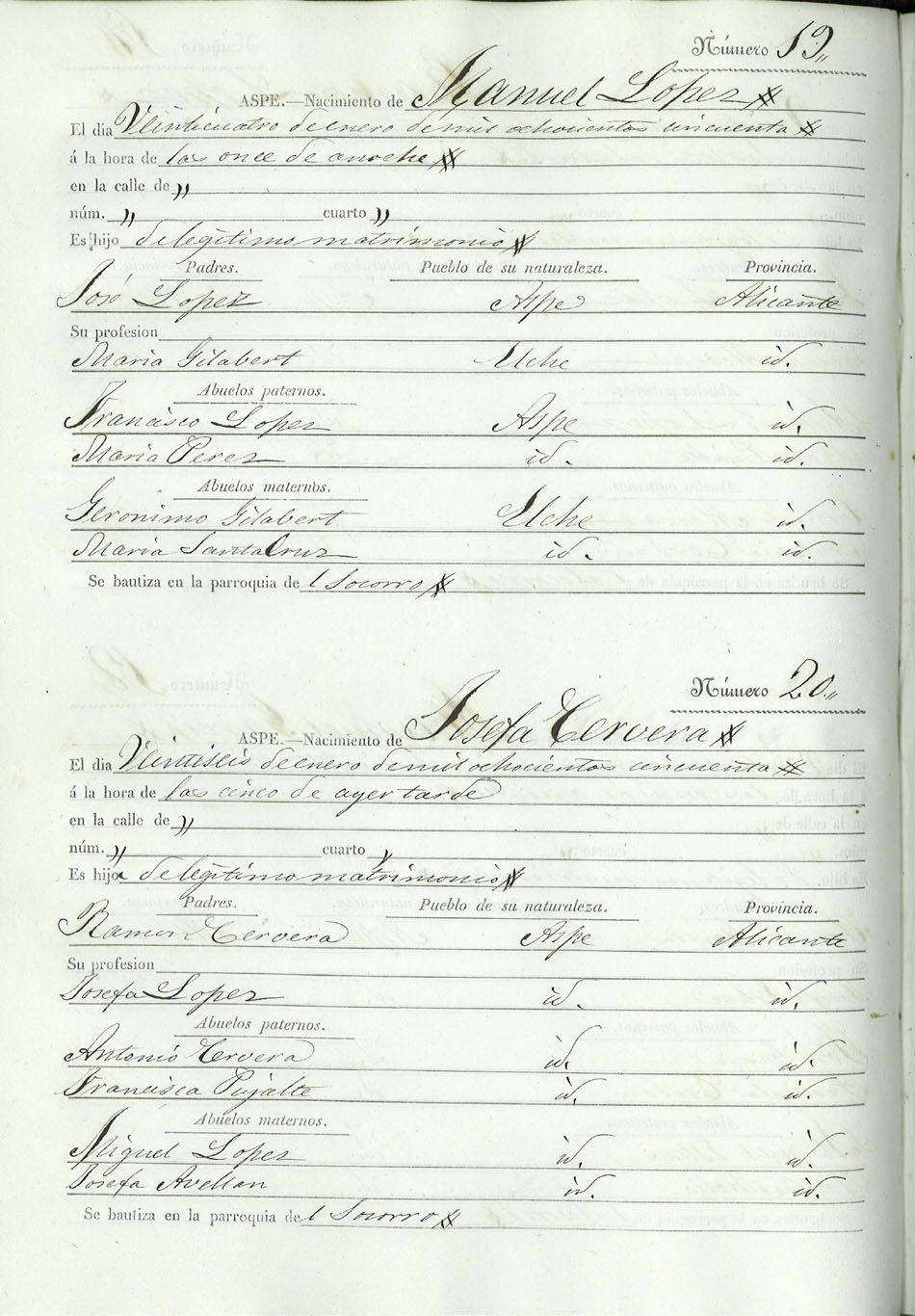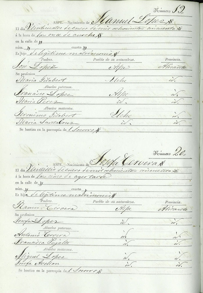 Registro civil de nacidos de la Villa de Aspe