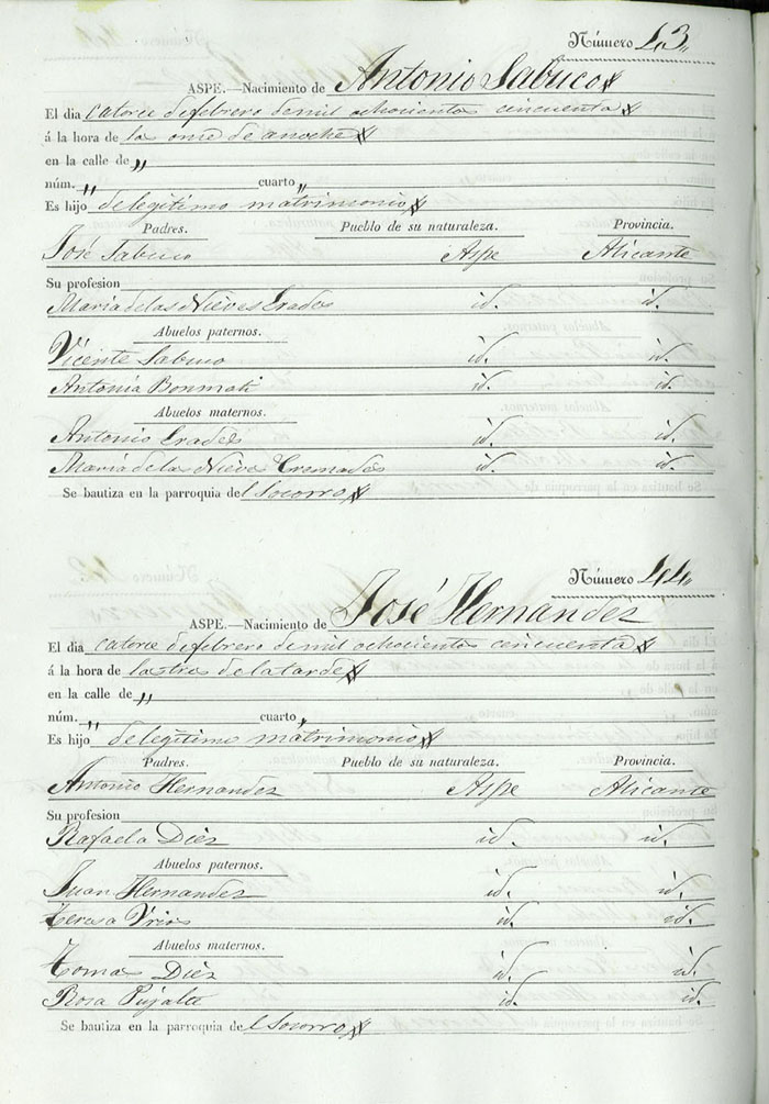 Registro civil de nacidos de la Villa de Aspe