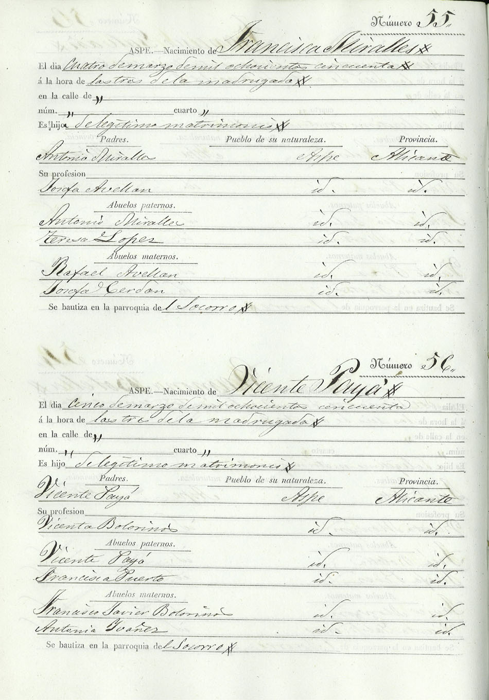 Registro civil de nacidos de la Villa de Aspe