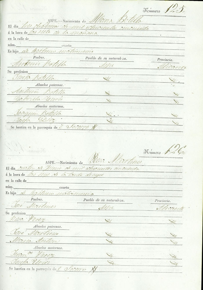 Registro civil de nacidos de la Villa de Aspe