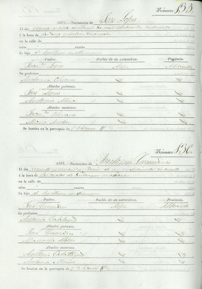 Registro civil de nacidos de la Villa de Aspe