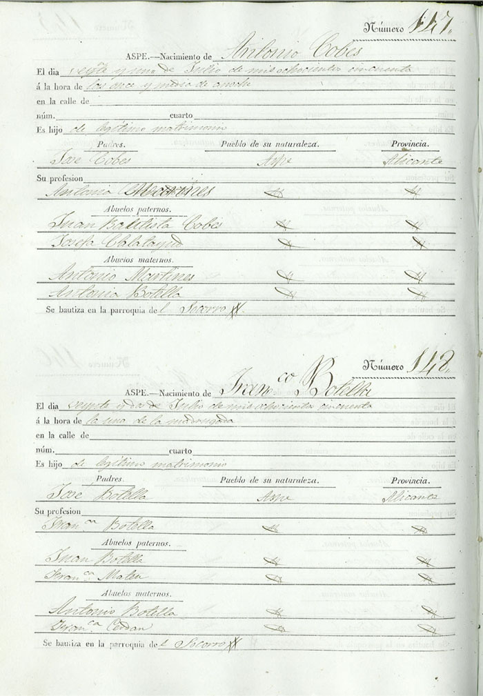 Registro civil de nacidos de la Villa de Aspe