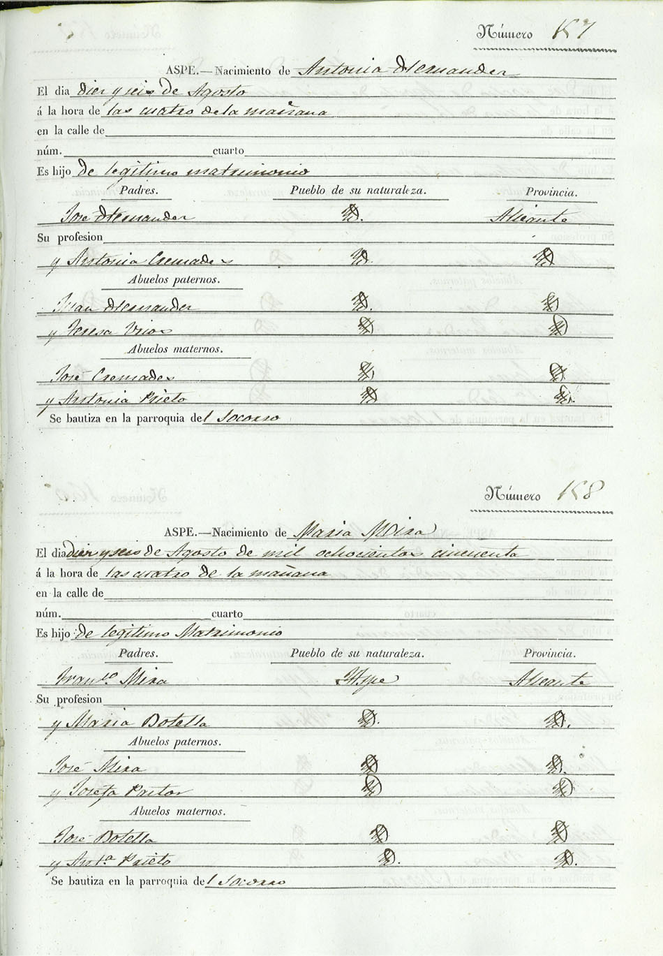 Registro civil de nacidos de la Villa de Aspe