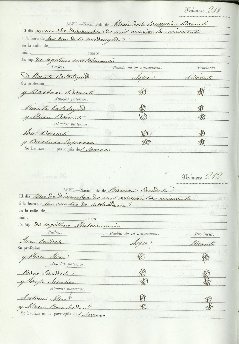 Registro civil de nacidos de la Villa de Aspe