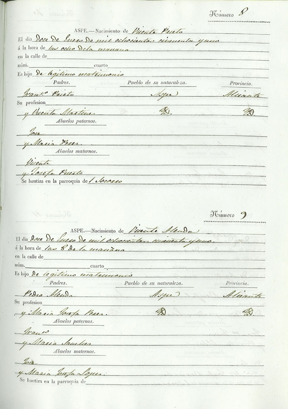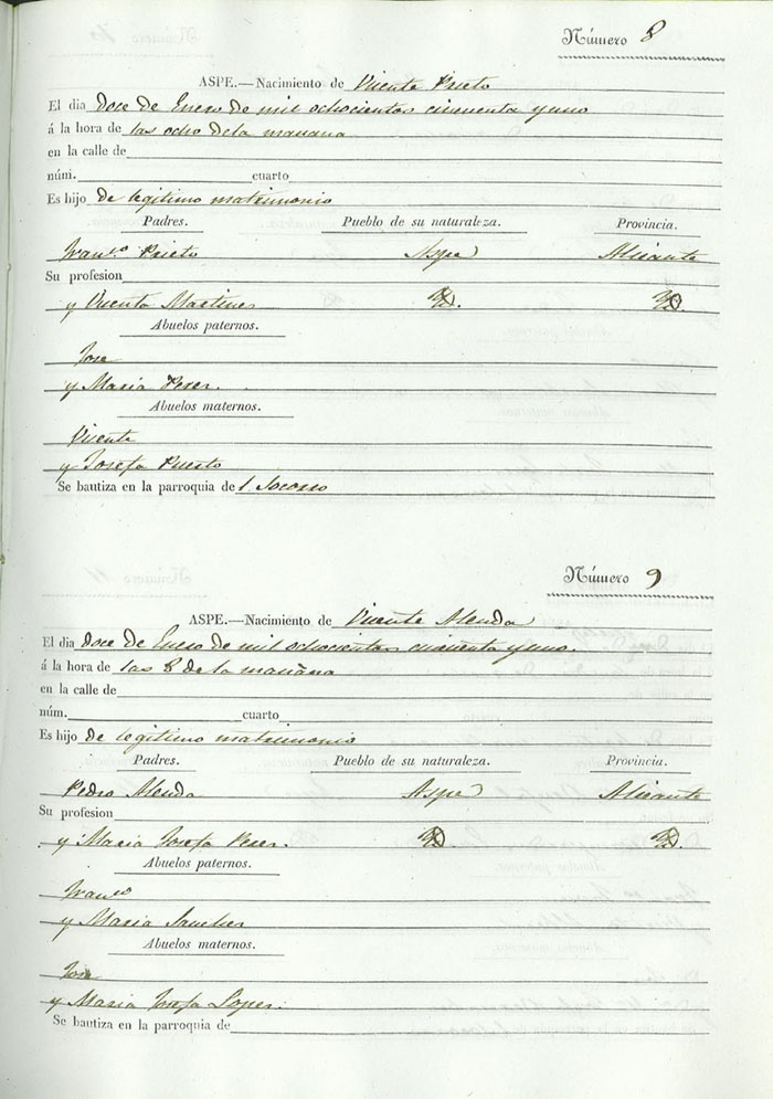 Registro civil de nacidos de la Villa de Aspe