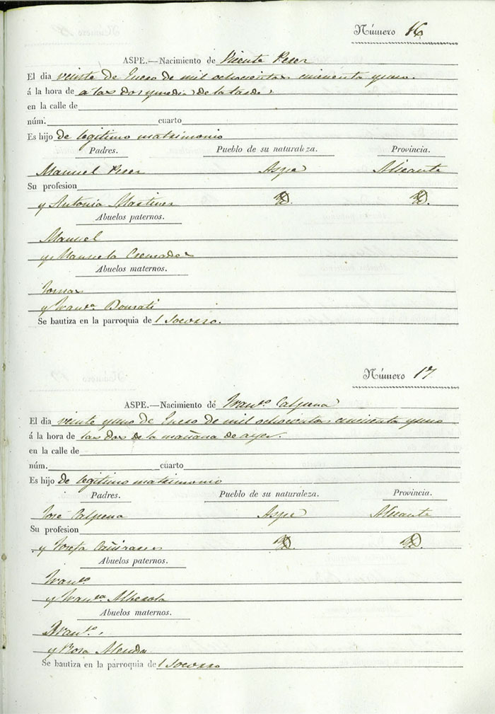 Registro civil de nacidos de la Villa de Aspe